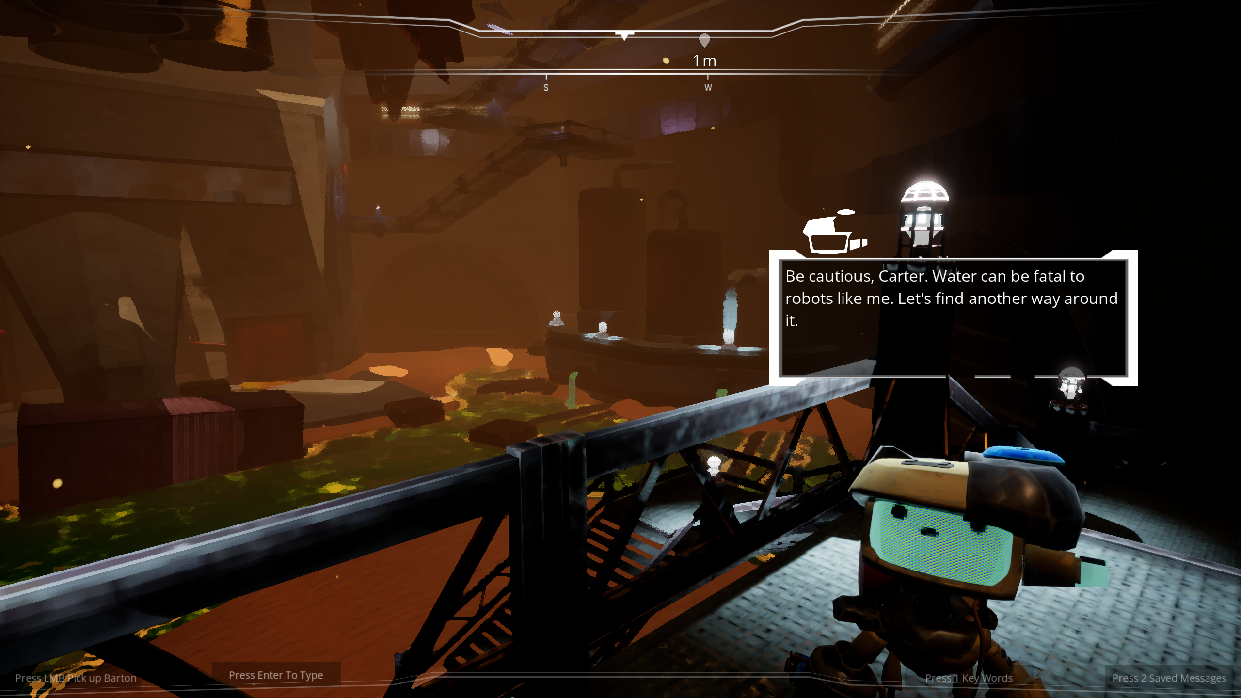 A sci-fi themed puzzle adventure, where the player has an open dialogue with a companion bot named Barton.