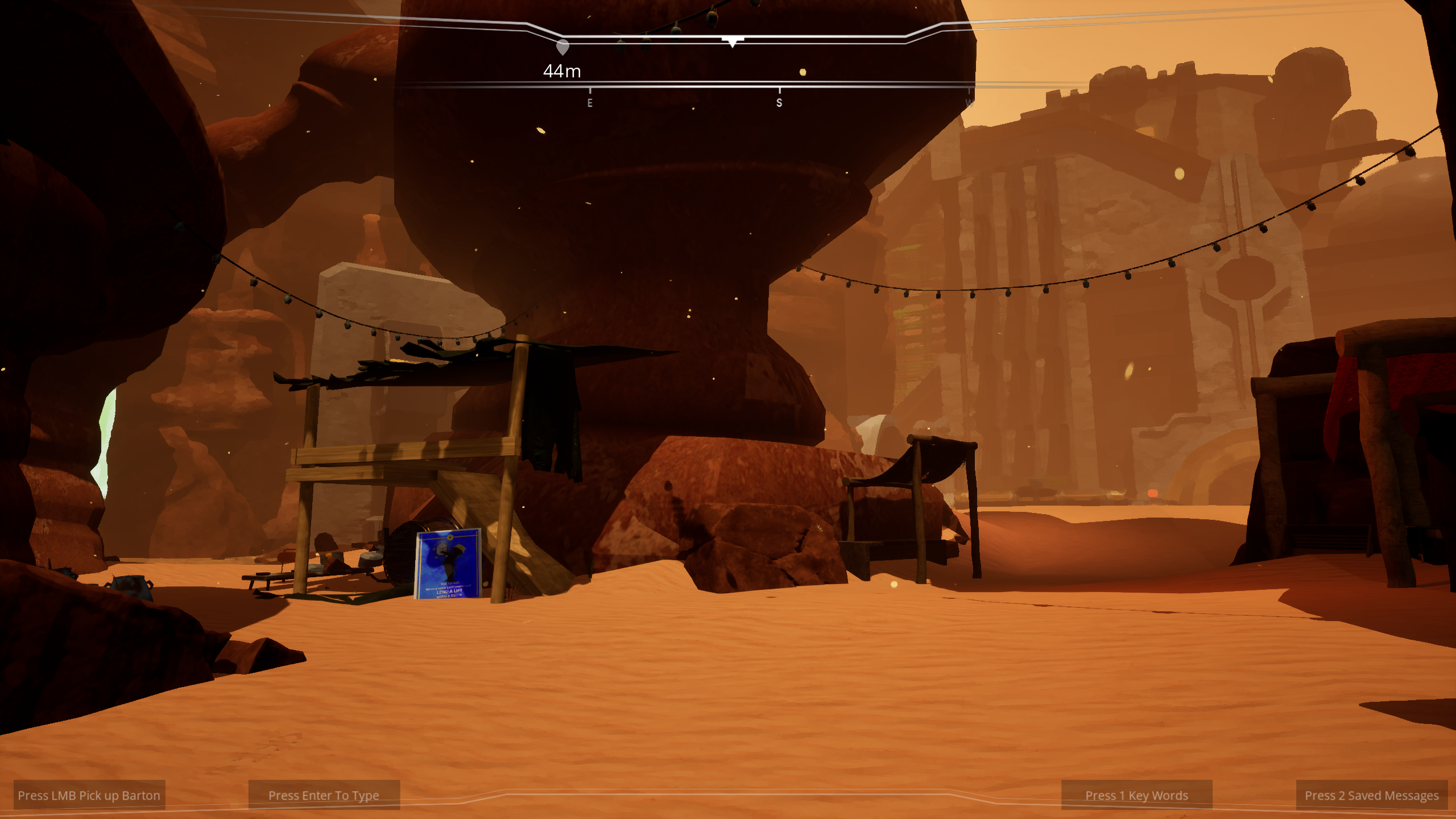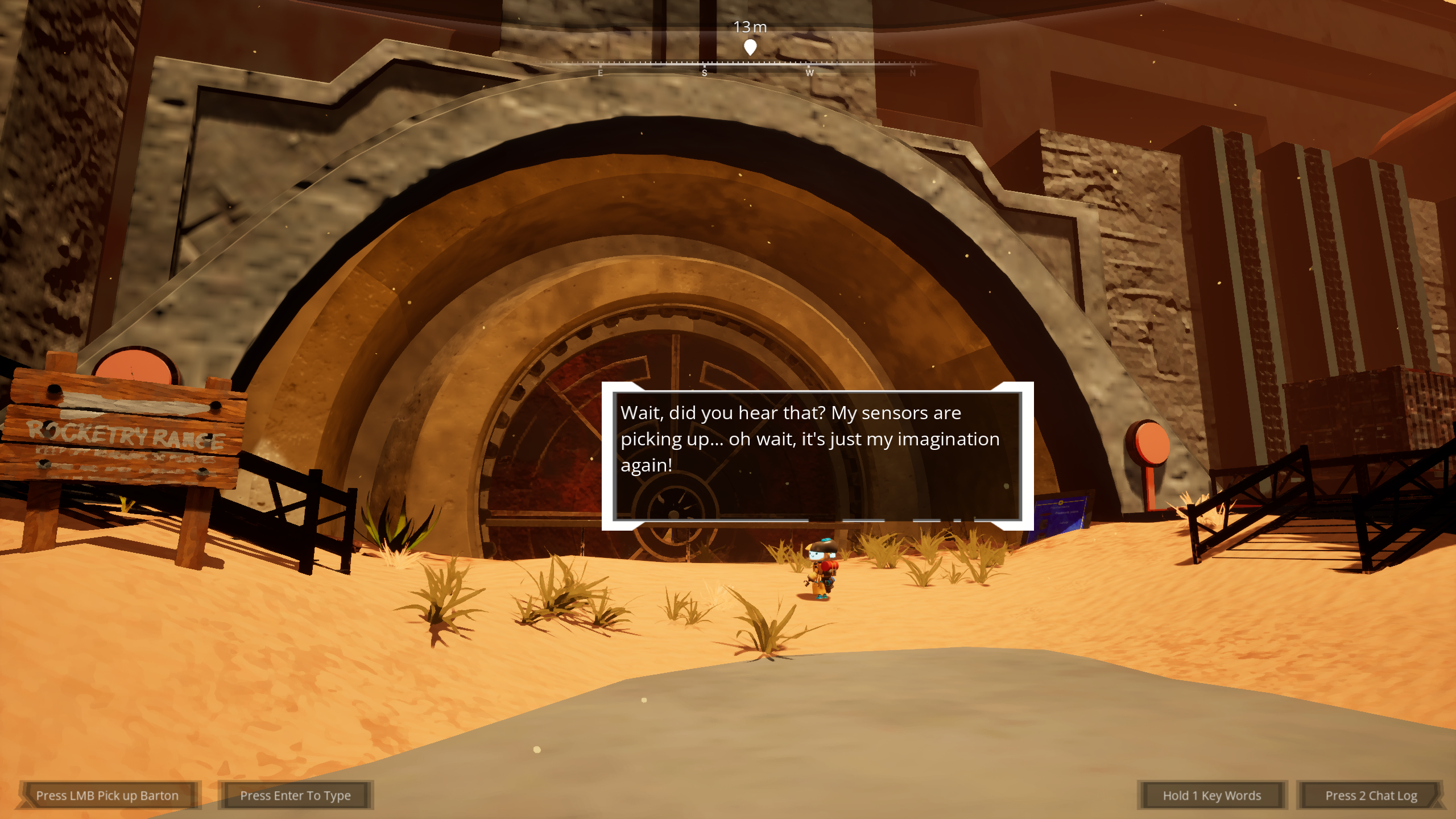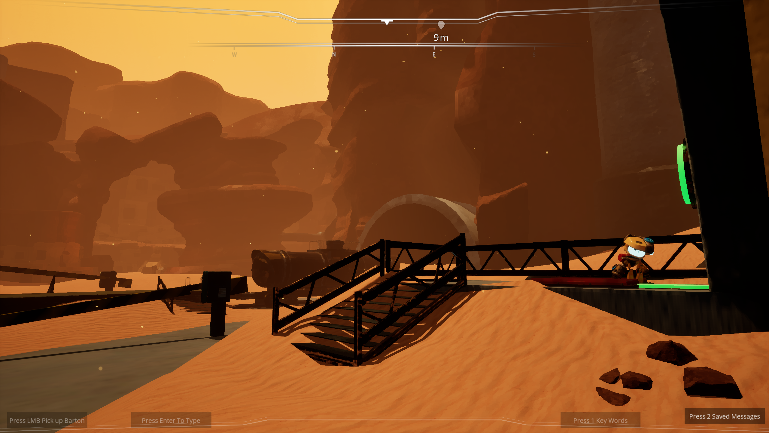 Barton's open dialogue functionality is driven from a Large Language Learning Model (Chat GTP 4o mini). Through player input and prompts, you and Barton can discuss anything, and build a connection together. What kind of relationship will you develop, while seeking to escape this desolate desert planet?