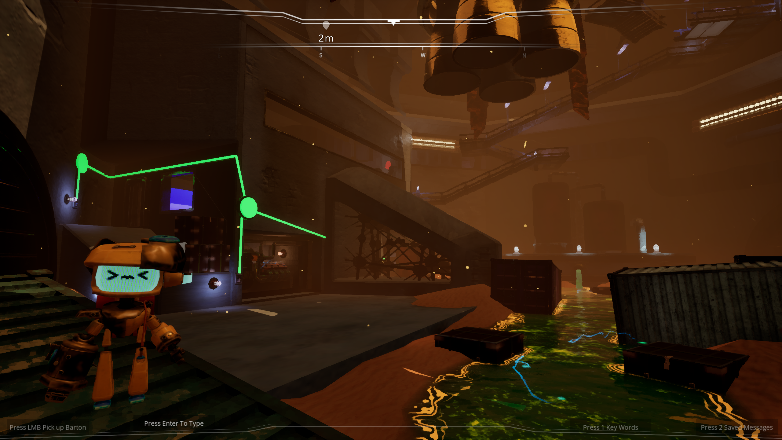 We sought to create a unique experience where the player crash lands on a desolate planet, and must work with a quirky bot named Barton, to ascend an abandoned research facility, and escape together. All while the player and Barton can converse back and forth with each other, building a rapport and relationship that's entirely unique. Because of Barton's dialogue being non deterministic, no one playthrough will ever be the same as the last.